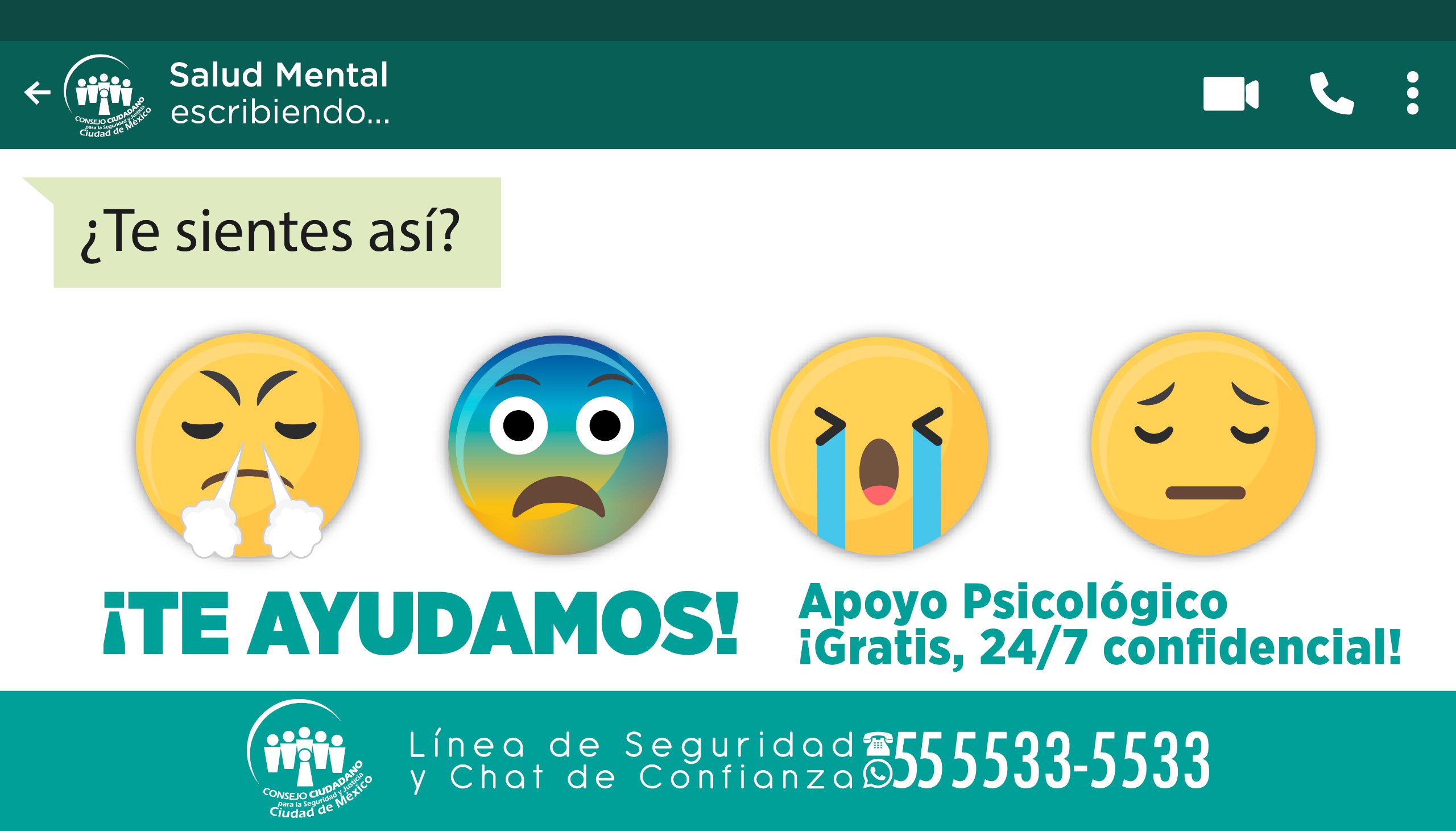 La contención emocional proporcionada por el Consejo Ciudadano en la Línea de Seguridad y Chat de Confianza, 55 5533 5533, es confidencial, 24/7 y para todo el país.