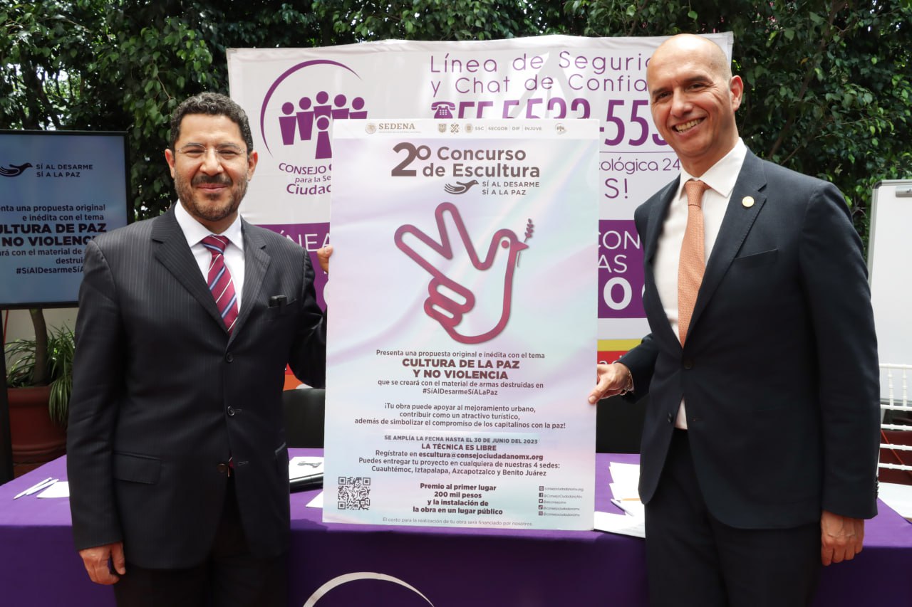 “Hoy damos otro paso para fortalecer este programa, convocando a todas y todos los que quieran participar a presentar proyectos para construir un segundo monumento por la paz, con los restos de las armas que se han recabado, que son más de 4 mil armas y que son más de 4 toneladas de pedazos de armas cortadas y destruidas por el Ejército Mexicano”, detalló Batres Guadarrama.